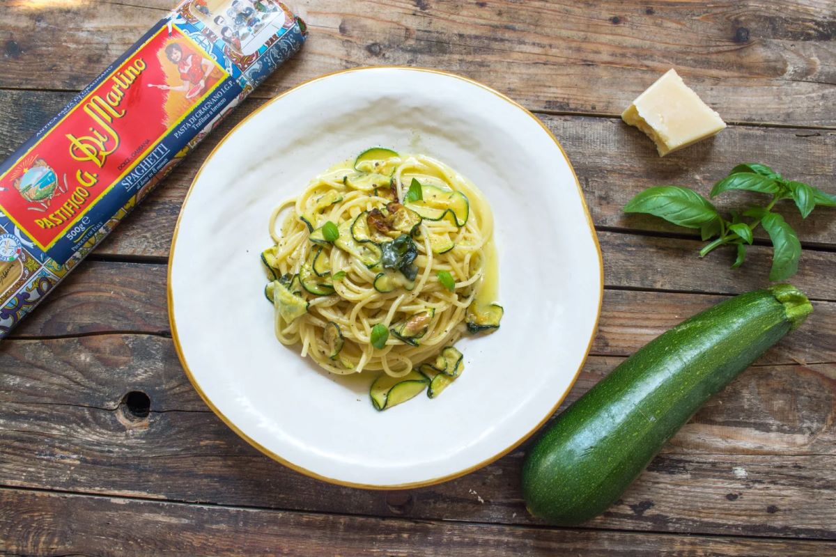 je to jednoduchý a nenáročný recept, který kombinuje základní suroviny: cuketu, gragnano špagety, tři druhy sýrů (Parmigiano Reggiano, Provolone, Pecorino Romano), bylinky (bazalka a máta) a olivový olej. Výsledkem je jemná, krémová chuť s čerstvými bylinnými tóny, lehké, aromatické jídlo, které zdůrazňuje přirozenou sladkost cukety a použité sýry.