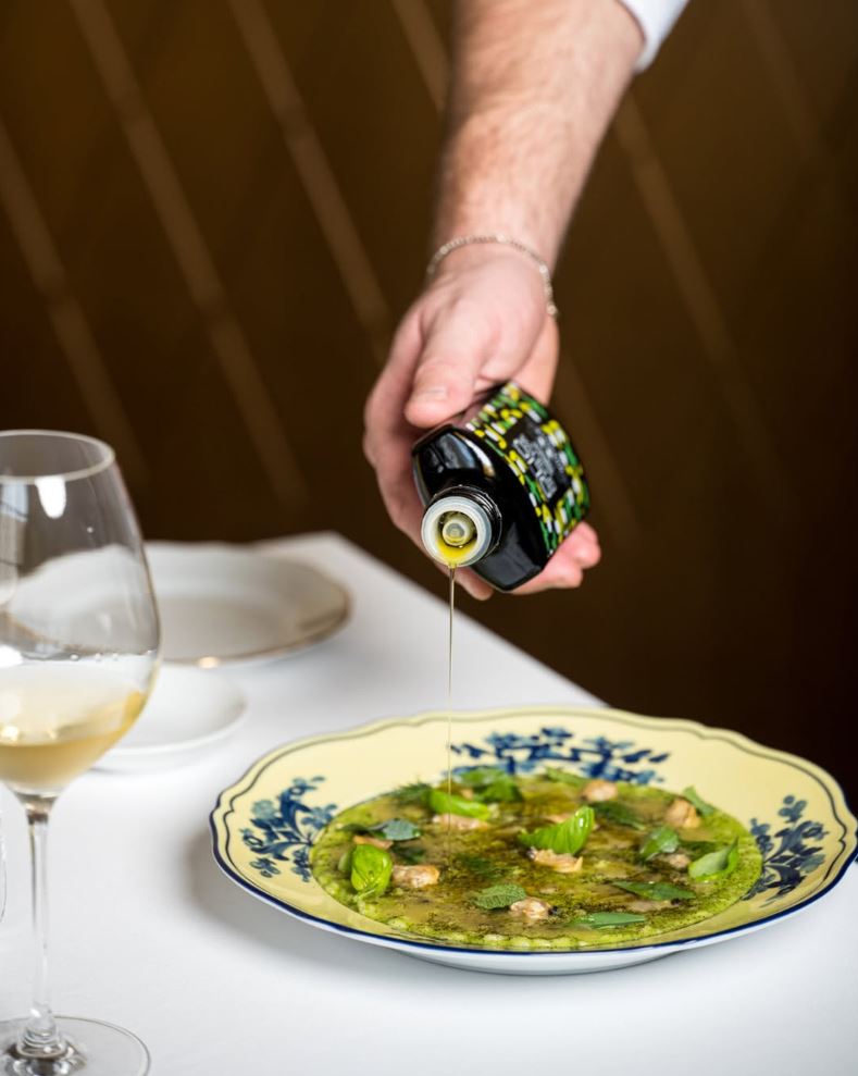 Za tímto skleněným balením extra panenského olivového oleje stojí pět generací italské rodiny Muraglia, která již přes 80 let lisuje olivy v srdci Apulie – jedné z nejvyhlášenějších oblastí pro výrobu vysoce kvalitního extra panenského olivového oleje. Každá oliva se sklízí ručně a lisuje za studena ve starém kamenném mlýně.Tento tradiční způsob lisování zachovává aromatické a fenolické složky, díky čemuž olej získává svoji typickou svěží ovocnou vůni, jemnou hořkost a elegantní pikantnost.