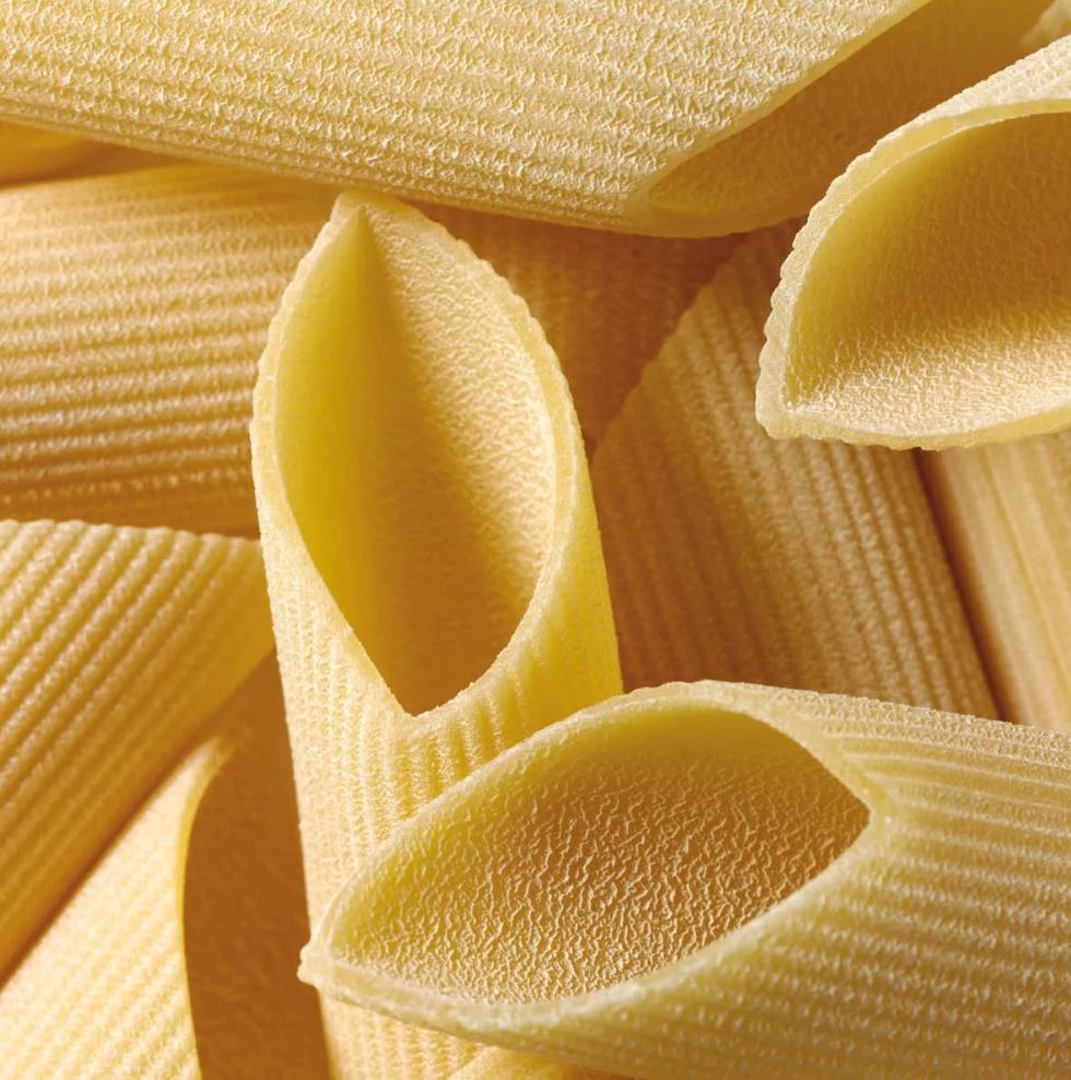 Penne patří mezi nejikoničtější italské těstoviny a jejich název je odvozen od slova penna (pero), protože šikmý řez připomíná hrot starého inkoustového pera. Penne Ziti Rigate jsou klasické trubičkové těstoviny, které se odlišují od hladkých Ziti Lisce jemnými vroubky po celém povrchu. Tyto vroubky dělají těstoviny nejen vizuálně zajímavějšími, ale hlavně umožňují omáčce lépe přilnout, takže každé sousto je plné chuti. Historicky se tyto těstoviny vyvinuly ve střední a jižní Itálii, zejména v Kampánii a Laziu, kde se staly součástí jednoduchých, ale výrazných jídel. Ziti (doslova „ženich a nevěsta“) byly tradičně spojeny se svatebními hostinami – dlouhé trubičky se lámaly rukou na kratší kousky a zapékaly se s omáčkami a sýrem.